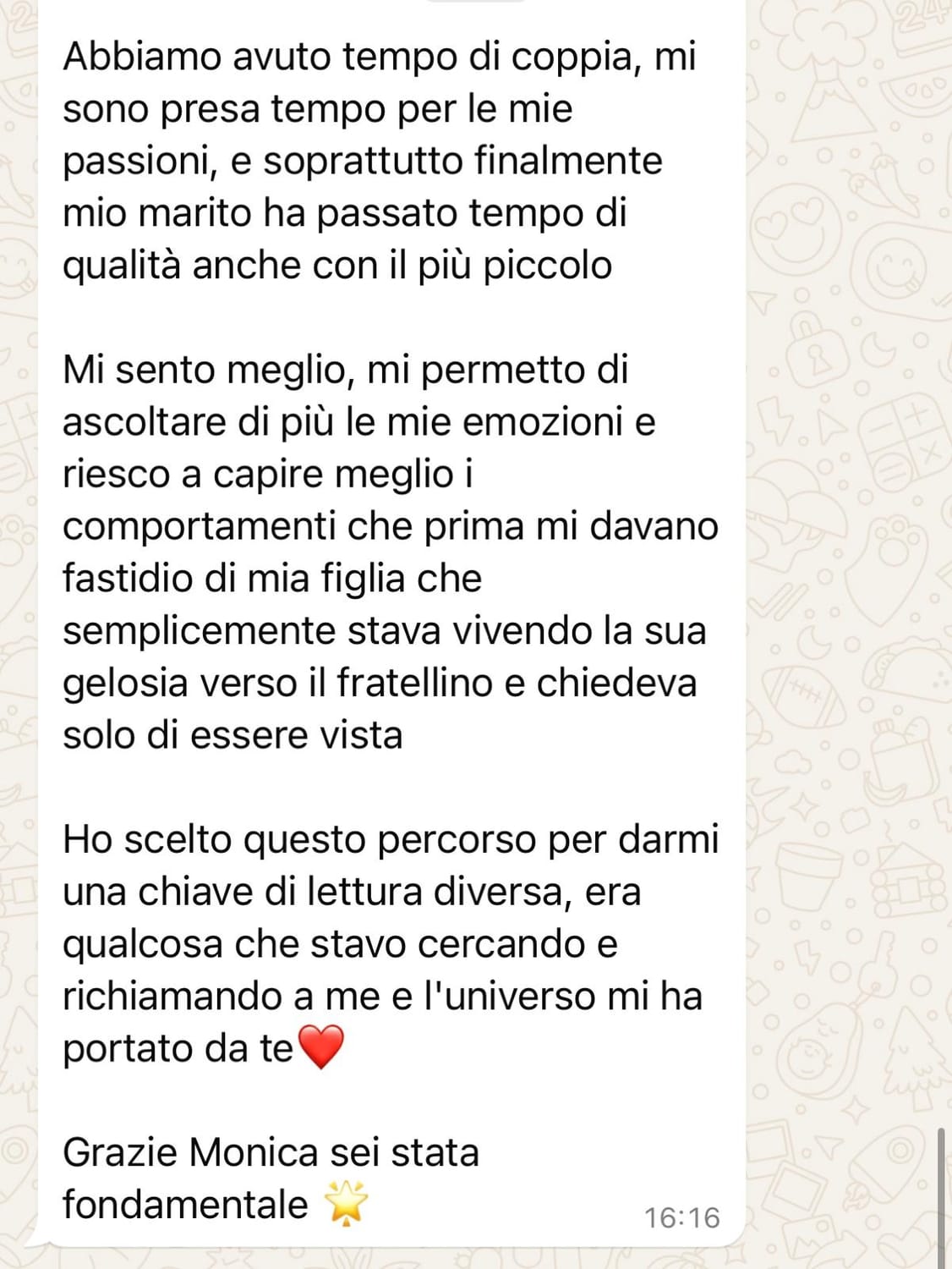 Ho aiutato più di 250 mamme a ritrovare la loro serenità, e oggi la mia community conta oltre 20.000 mamme che condividono questo percorso di crescita e trasformazione.